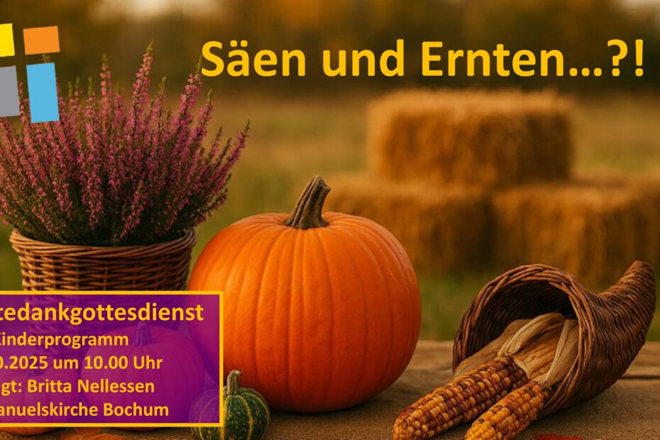 Am 5. Oktober feiern wir in der Immanuelskirche Erntedank, und Ihr könnt mit dabei sein! Erntedank bedeutet, dass wir uns bei Gott bedanken wollen, dass er uns so gut versorgt mit allem, was wir zum Leben brauchen. Wir zeigen das… Weiterlesen »Erntedankfest 2025