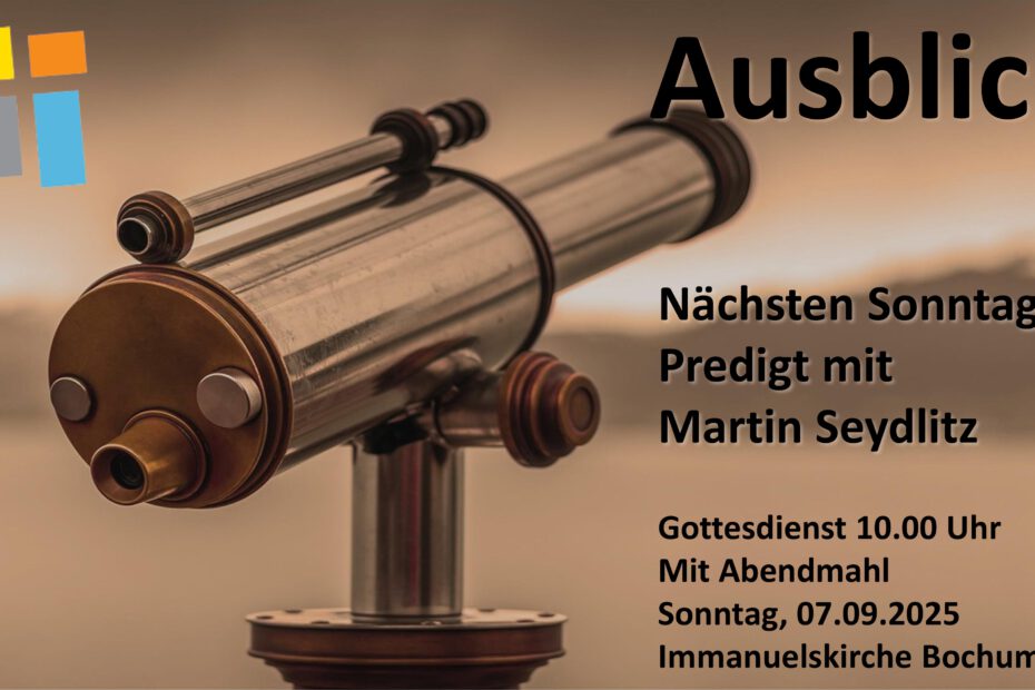 Du wirst bald eingeschult? Oder es geht nach den Ferien wieder neu los für Dich? Genau deswegen möchten wir Dich und Deine Familie in besonderer Weise einladen zu unserem Neustartgottesdienst am 24.08.2025 um 10:00 Uhr in der Immanuelskirche Bochum Der… Weiterlesen »Neustartgottesdienst