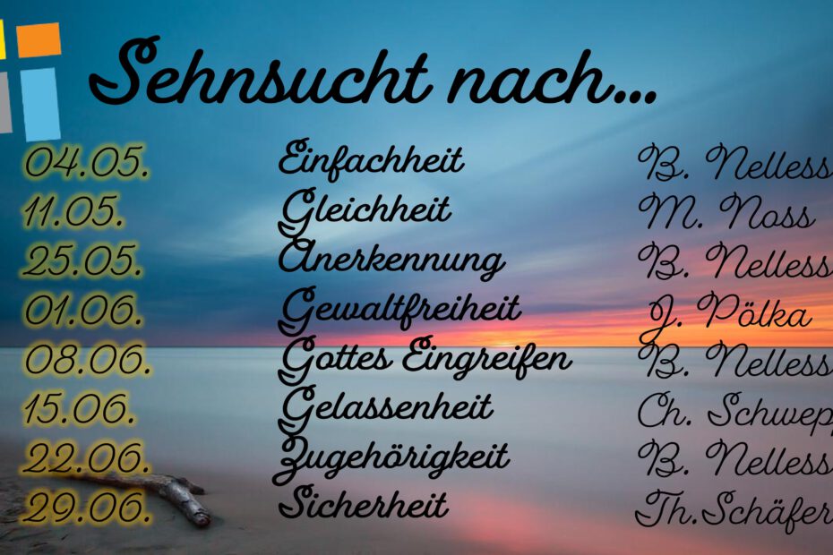 Unter diesem Motto stehen die Feriengottesdienste, die wir auch in diesem Sommer wieder bewusst anders gestalten möchten, als wir es sonst gewohnt sind. Urlaubszeit ist auch in unserer Gemeinde Reisezeit, und wir wünschen allen, denen eine Reise vergönnt ist, dass… Weiterlesen »Unterwegs mit allen Sinnen… | Feriengottesdienste